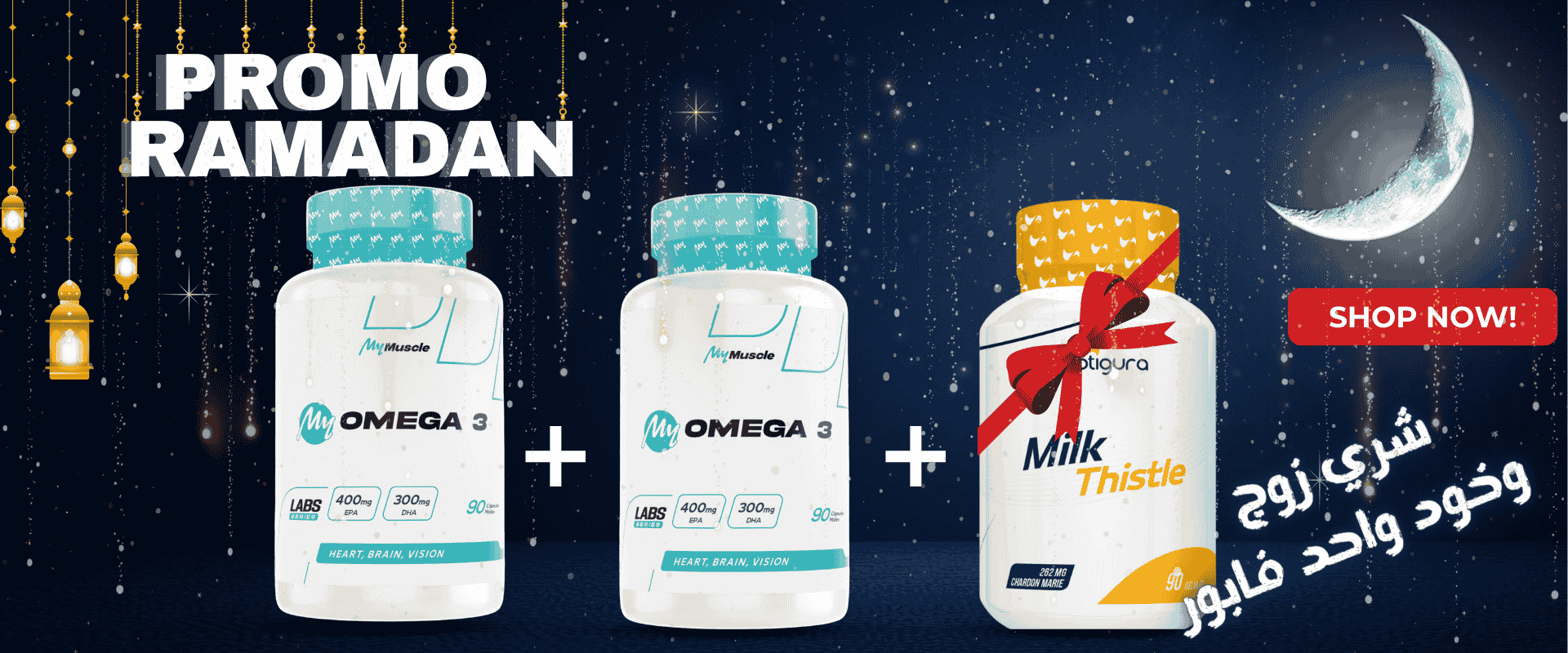 باك الحيوية والأداء يشمل Creatine Pro Zero 300g من Eric Favre، ZMA من Eric Favre، My Omega 3 من MyMuscle، مع شيكر وأربطة معصم مجانية. مثالي لتعزيز القوة، التعافي، الطاقة، والصحة العامة.