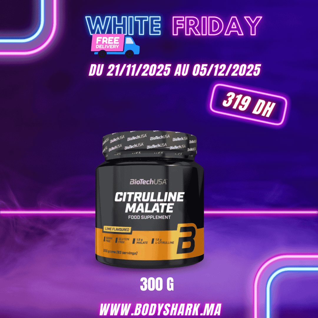 سيترولين مالات: تناول 6–8 غ قبل 30 إلى 60 دقيقة من التمرين لزيادة التحمل والضخ الدموي.